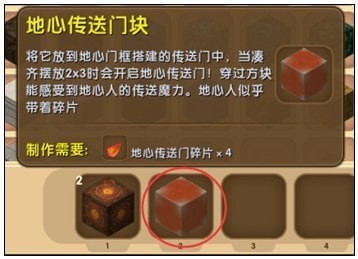 附:门框和传送块合成材料 地心门框:远古宝石*1+黑晶石*1+岩石块*1+岩浆铁桶*1