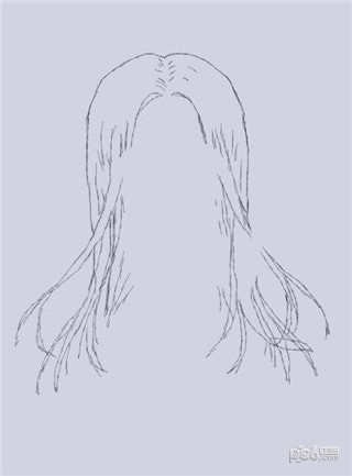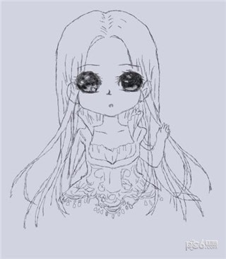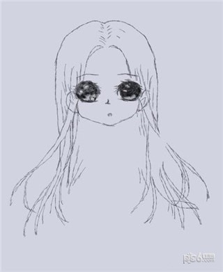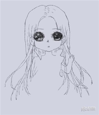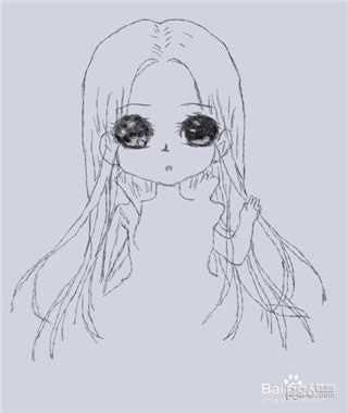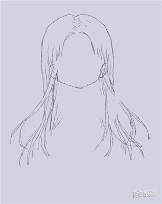 2、再在头发造型的基础上画出人物的耳朵和面部