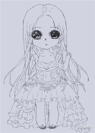 8、最后我们画出人物的两条腿部及脚部,这样我们的奇迹暖暖人物角色就画好了。