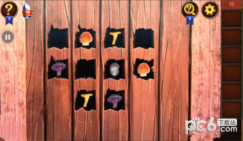 1、点左前方门,快速的将门上的相同图案点亮,门开,进入门内,收取一个扫把,点梯子上到房顶。