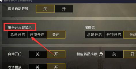 点击将开火键显示打开,选择【总是开启】即可解决。