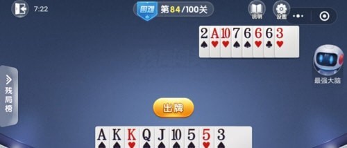 | 随着智能手机的迅速普及,与3G网络的快速发展,移动互联网的相关业务,已逐渐成为国内各厂商关注的焦点,中国手机游戏市场目前仍然以单机版游戏为主,网游版产品所占比重较低。从整体行业来看,中国手机游戏行业处于快速发展期,近两年来,在电信运营商和手机游戏开发商的联合推动下,中国的手机游戏行业,取得了较快的发展。 微信欢乐斗地主残局闯关困难第84关的手牌为AKKQJ10553,下面就让我们一起来看下,斗地主残局困难模式84关攻略。