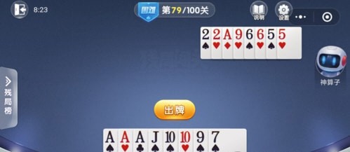 | 随着智能手机的迅速普及,与3G网络的快速发展,移动互联网的相关业务,已逐渐成为国内各厂商关注的焦点,中国手机游戏市场目前仍然以单机版游戏为主,网游版产品所占比重较低。从整体行业来看,中国手机游戏行业处于快速发展期,近两年来,在电信运营商和手机游戏开发商的联合推动下,中国的手机游戏行业,取得了较快的发展。 微信欢乐斗地主残局闯关困难第80关的手牌为AAKQQQJ10985,下面就让我们一起来看下,斗地主残局困难模式80关攻略。
