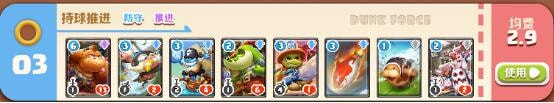 危机救援灌篮军团新手卡组搭配方案 第一套:简单易用,5张稀有蓝卡+3张普通白卡。该套卡组相对保守,以防为主,推进为辅,重在消耗低,平均消耗2.9,冷却时间短; ![]() 第二套:贴身肉搏,3张稀有蓝卡+5张普通白卡。此套卡组重在推进,消耗较高,平均消耗3.1,冷却时间相对较长,最好抢占先机,一波推进,直捣黄龙; ![]() 第三套:持球推进,1张史诗紫卡+5张稀有蓝卡+2张普通白卡。该套卡组与第一套的策略类似,防守为主,推进为辅,但多了史诗级的紫卡,因而能量消耗点较高,平均消耗2.9,进而卡组阵容也壮大不少; ![]() 第四套:数量取胜,3张稀有蓝卡+5张普通白卡。此套卡组以进攻为主,卡牌能量点都较低,平均消耗2.3,适合“人海战术”式玩法。