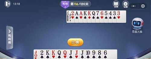 | 随着智能手机的迅速普及,与3G网络的快速发展,移动互联网的相关业务,已逐渐成为国内各厂商关注的焦点,中国手机游戏市场目前仍然以单机版游戏为主,网游版产品所占比重较低。从整体行业来看,中国手机游戏行业处于快速发展期,近两年来,在电信运营商和手机游戏开发商的联合推动下,中国的手机游戏行业,取得了较快的发展。 微信欢乐斗地主残局闯关专家第118关的手牌为QQJ109876333,下面就让我们一起来看下,斗地主残局专家模式118关攻略。