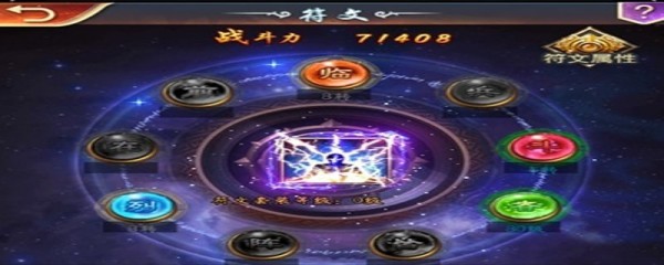界面上方显示的当前符文套装加成的战斗力数值,界面右上角的符文属性按钮,点击可以查看当前符文套装属性加成;