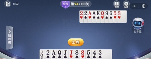 | 随着智能手机的迅速普及,与3G网络的快速发展,移动互联网的相关业务,已逐渐成为国内各厂商关注的焦点,中国手机游戏市场目前仍然以单机版游戏为主,网游版产品所占比重较低。从整体行业来看,中国手机游戏行业处于快速发展期,近两年来,在电信运营商和手机游戏开发商的联合推动下,中国的手机游戏行业,取得了较快的发展。 微信欢乐斗地主残局闯关专家第94关的手牌为小王2AQJJ88453,下面就让我们一起来看下,斗地主残局专家模式94关攻略。