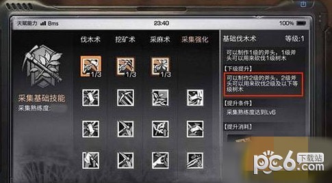 采集在明日之后中是非常重要的一个环节,而采集等级的高低则直接决定了是否能够采集到高级的资源 从而为以后制作高级的道具做好准备。因为在末世中,技能书是比较珍惜的物品,所以我们在采集能力学习的选择上就要慎重了。 在玩家采集能力到达8级后,系统会自动赠送基础伐木学、基础挖矿学、基础采麻学书本各一本。 这里小版推荐大家将书本都用在学习基础采集术上,既基础伐木术、基础挖矿术、基础采麻术。因为采集等级达到8级以后,幸存者们便可以进入沙石堡地图中进行活动了 而需要留意的是,沙石堡地图中的资源都是LV2的,所以我们需要基础采集术这时候就派上用场了。 把书本用到别的技能上的幸运者也不用担心,书本可以在野外的珍稀箱子、探索密斯卡大学以及商城中获得。