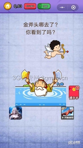 | 随着智能手机的迅速普及,与3G网络的快速发展,移动互联网的相关业务,已逐渐成为国内各厂商关注的焦点,中国手机游戏市场目前仍然以单机版游戏为主,网游版产品所占比重较低。从整体行业来看,中国手机游戏行业处于快速发展期,近两年来,在电信运营商和手机游戏开发商的联合推动下,中国的手机游戏行业,取得了较快的发展。 微信燃烧吧我的大脑第83关是金斧头哪去了?难度比较简单,那么微信燃烧吧我的大脑第83怎么过呢?下面将给大家带微信燃烧吧我的大脑第83关答案。 第83关