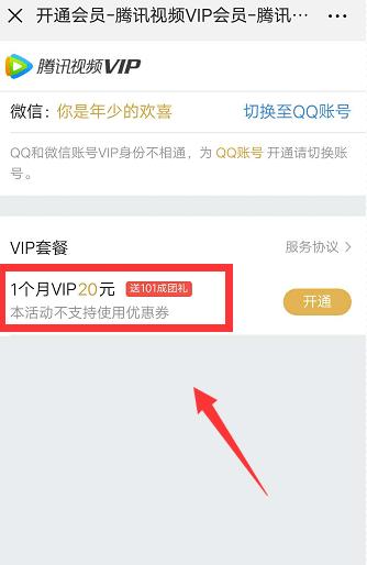 如果小伙伴们觉得太贵了,那么可以选择开通腾讯VIP月卡。