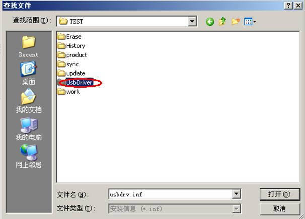 打开‘TEST'’文件夹,选择‘UsbDriver’