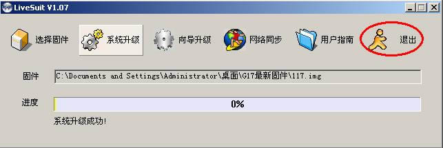 升级完成后,若想退出,则点击右上角的‘退出’即可,如下图所示