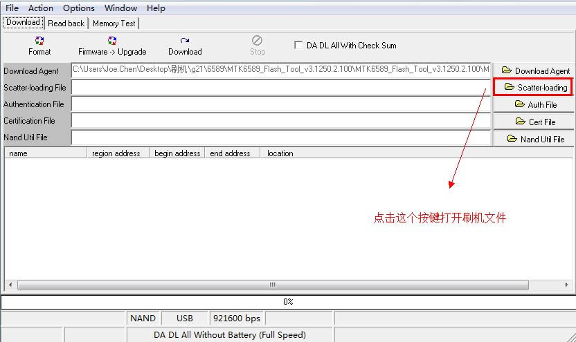 4.打开刷机工具SP_Flash_Tool文件夹的Flash_tool.exe程序,开始配置刷机工具,具体看图片: