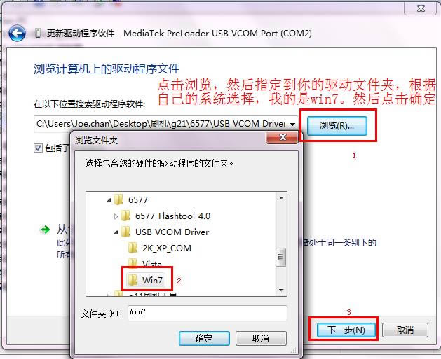 (3) 选择从计算机查找驱动后,指定驱动文件夹: