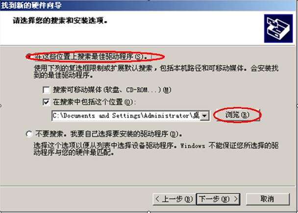 点击下一步,出现如下所示界面,选择‘在这些位置上搜索*佳驱动程序(S)’