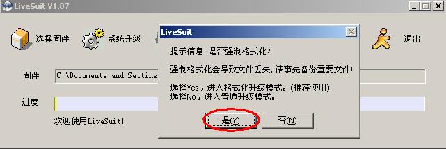 为了不让上一版固件对新的固件产生影响,建议选择‘是’,即格式化升级,但此种升级方法会清空磁盘内所有数据,请事先备份重要文件。 若选择‘否’,即普通升级,升级后磁盘内原有的非系统文件不会清空。