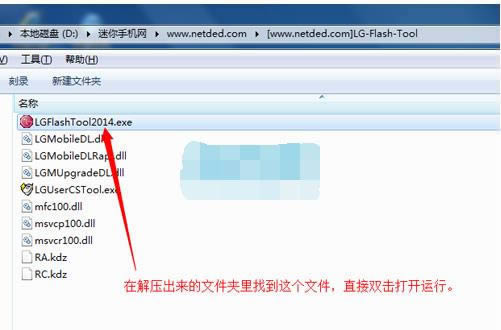2:接着再把上面下载下来的LG刷机工具包在电脑上进行解压,然后在解压出来的文件夹里找到【LGFlashTool2014.exe】,然后双击打开
