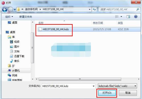 3:然后点击下图所示的位置,然后弹出一个窗口选择刚才解压出来的kdz格式的文件