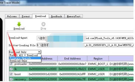 4:然后点击【Option】->【Option】->【download】,然后勾选”DA DL All With Check Sum”,检查name处,要打钩:
