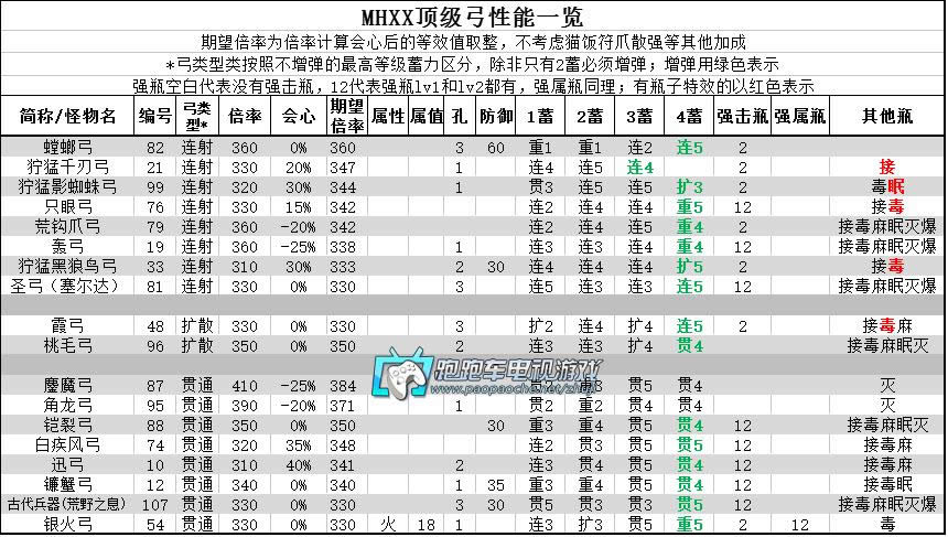 顶级弓为统计所有330以上带有强追瓶2的弓,(额外计入鏖魔和角龙弓还有桃毛弓,因为倍率够高)