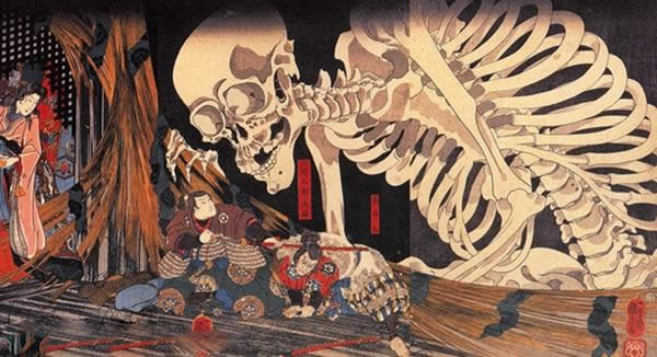 江户时代作家山东京传的著作《善知乌安方忠义伝》中的浮世绘故事中的大骷髅是用妖术召唤出来的妖怪,与近代传说并无相似,但近代的"荒骷髅"传说很有可能是以此为原型。