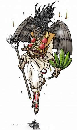 又写做"鸦天狗",日本传说中的妖怪,为天狗的一种,因为有著和乌鸦一样的尖嘴和漆黑的羽翼而得名。