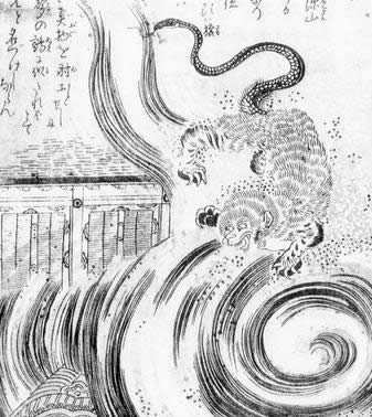 关于鵺的传说,在源平时代就已经存在,在《平家物语》中就有记载,它拥有猴子的脸、虎的身体、大蛇的尾巴(也有说猴脸、狸身、虎的四肢和蛇尾的说法),类似的妖怪在欧美被成为奇美拉。鵺的叫声像虎斑地鸫,被认为是不详的声音,传说它的咆哮可以撕裂天空,招来雷电,曾多次引发世间混乱。