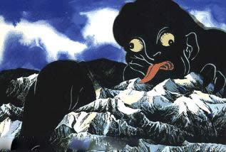 大入道的字面意思是指高僧,但在日本传说中,更多的是指堕落的高僧变化而成的妖怪,在日本各地都有大入道危害人民的传说。大入道有强韧的身体,和一根能伸长的舌头。