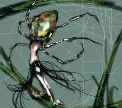 又叫女郎蜘蛛,传说中最早的女郎蜘蛛是位嫁给某地领主的美女所化,领主撞破了她与别的男子的情事,便将她扔进一只装满毒蜘蛛的箱子,让蜘蛛吸食她的身体。她死后,怨灵与毒蜘蛛合为一体,成为了无情的女郎蜘蛛。