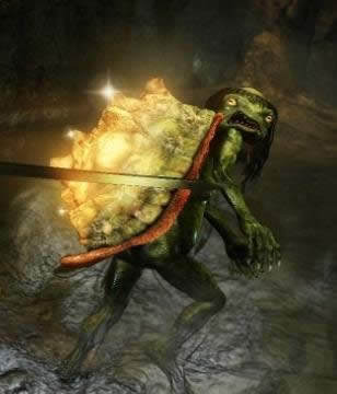 河童是日本神话中的传说生物,有鸟的喙、青蛙的四肢、猴子的身体及乌龟的壳,如同多种动物的综合体。传说其弱点为头顶的碟,只要诱骗河童弯身,让他头顶碟子里装的水流尽,他就会精力尽失。据说目前日本存有河童的**。很多日本人相信有河童,虽然几乎鲜少人看过。而河童喜爱的食物是小黄瓜、茄子、南瓜、油麻的茎,而河童讨厌的东西是金属(铁)、玉米、大角豆、麻的灰烬、鹿角、牵牛花、葫芦,兴趣是跟小朋友玩相扑。