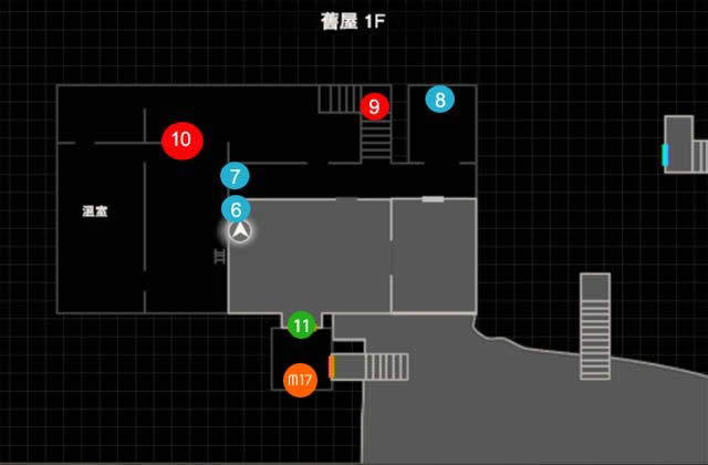 【7】位置屋内左侧、右上、左下等有4个陷阱炸弹。房间抽屉内可取的第23个古钱币。