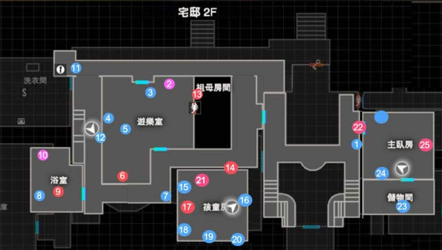 爬梯子上去,阁楼梯子背后,玩具枪 玩具斧点位置,架子上发现第19个古钱币。 测试区域,看录像带的房间内,电视机背后桌上发现第20个古钱币。