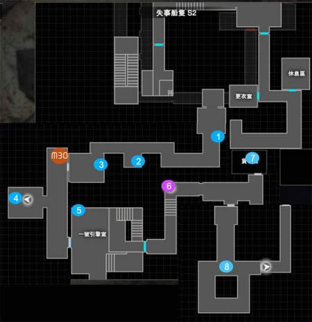 【废船4F】 监视器找到伊森的位置后,会遇到被小女孩抓住手臂的剧情。下图位置M26被杂物堵住门的场所地面上,发现第26个古钱币。