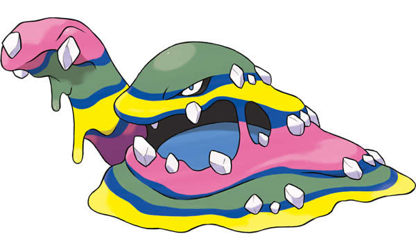 属性:毒+恶 种族值:HP 105 攻击 105 防御 75 特攻 65 特防 100 速度 50 阿罗拉形态的七彩臭臭泥,毒+恶的属性组合抗性非常优秀,仅被地面系克制。本身的耐久也很不错,而且前期就可以捕捉,推荐入队。 获得方式:臭泥38级进化 臭泥分布:1岛宝可梦学校、好奥乐市商业区 小碎钻