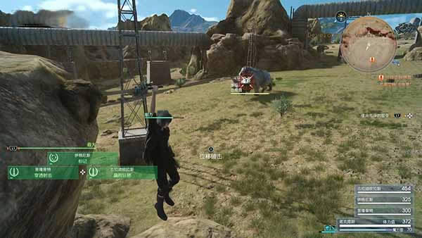 4、战斗时场景内可能有高处悬挂点,长按 △/Y 可瞬移到悬挂点,瞬间恢复 MP(即使 MP 已枯竭,也能瞬移过去),悬挂时间受耐力限制。