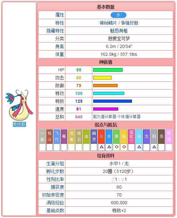 进化后美纳斯后基本数据