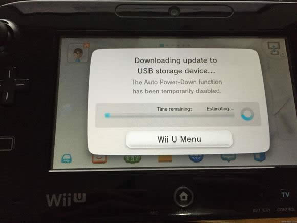 然后把硬盘插到wiiu上,供电线插到下面,会提示格式化,等待格式化好