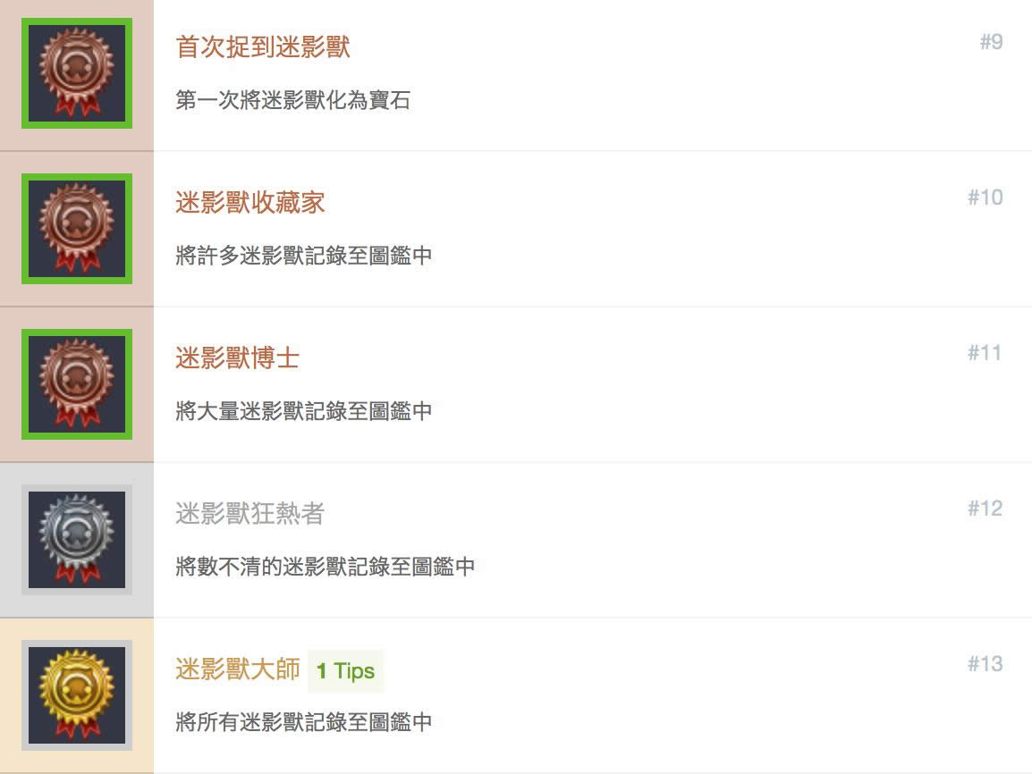 除此以外需要提醒的就是:每一种迷影兽必须被宝石化1次or由其他种类变化过一次,使图鉴中的图像灰变彩色,才算真正得到。