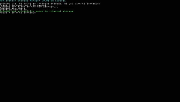 应用存储管理助手由开发者Lupo511开发,你可以使用该工具将自制软件和游戏文件迁移到PSV上内置的ur0:存储分区中。同时该工具会修改你的app.db文件,来确保被迁移的程序气泡可以正确的显示在桌面上,并可以成功运行。因为该操作可能影响你的内部系统分区,所以在使用前一定要做好心理准备,并确保你知道自己在做什么。Wololo.cn和作者都不会对因该操作对主机造成的损害承担任何责任。该程序未来版本将会引入更好看的图形界面。