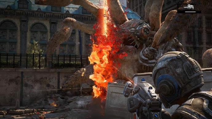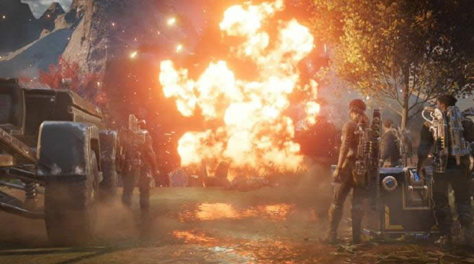 坚守有些难度,虽然手里有黎明之锤可是武器的冷却时间有些漫长,因此还是以机枪清兵为主,黎明之锤使用在怪**的地方,优先解决离自己距离近的敌人,子弹尽可能在白道处填好,这样可以提升武器威力(大佬们相信都知道,就当我废话好了),敌人清光后剧情会刷出一只掠夺兽,需要两发黎明之锤带走,需要注意的是掠夺兽的火箭炮伤害很高,射完一发之后要立刻离开否则九成会被击倒,一共会刷出两只掠夺兽,都解决掉以后触发剧情第二部分结束。