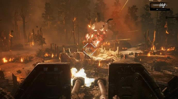 一段剧情过后,会进入第二部分,开局便会和兽人进行交战,这里优先将爬虫敌人击杀,最好使用盲射,因为敌人血量很少所以盲射很容易便可以击杀掉,之后将剩下的两个兽人干掉,往前推进后,会出现掘地兽,并且同时刷出三个兽人,剧情需要玩家去拾取黎明之锤,这里推荐先将兽人杂兵干掉,在慢慢用黎明之锤将掘地兽点掉,5—6炮后会进入二阶段,掘地兽会暂时撤离,同时会刷出很多兽人,高难度缩起来慢慢点掉,交战途中掘地兽会再次出现,这里依旧是保持之前的打法,清怪轰掘地兽,反复5—6次便可以触发包围大门的剧情。