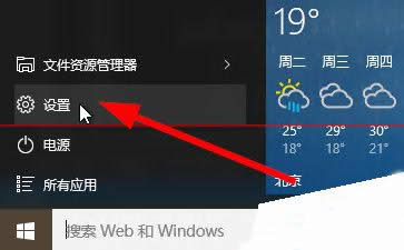 1、点击开始菜单按钮,选择设置