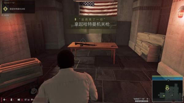 要对付涌来的众多警卫,仅靠两人的手枪显然捉襟见肘,不过通过之前的银行内应,吉奥尔吉轻易确定了军械库的所在位置,不过军械库的大门上锁了,吉奥尔吉拙劣的撬锁技巧让林肯看不下去了,叫开吉奥尔吉,林肯决定亲自上阵。撬锁的技巧就是先移动鼠标,等光标变绿色时按下鼠标左键,再等待光标移动到绿色区域按E即可。