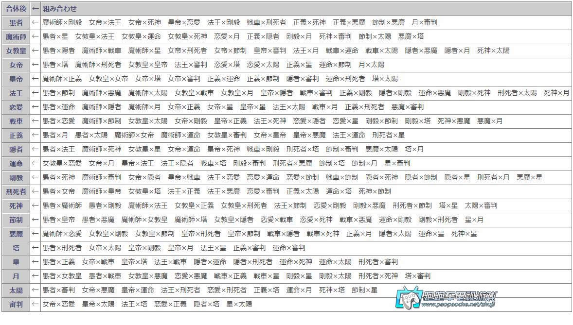 下面是女神异闻录5的Persona合成表,想要了解如何合成的玩家可以参考。