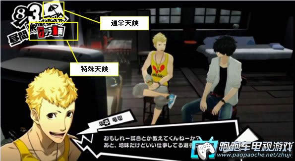 | 电视游戏是一种用来娱乐的交互式多媒体。通常是指使用电视屏幕为显示器,在“电视游乐器”上执行家用机的游戏,与电脑游戏(PC Game)都属电子游戏的一种。在日本,电视游戏比电脑游戏更为普遍,由于价格较便宜、游戏软件种类多、设计也较亲切、容易上手。大多数人认为,电视游戏比电脑游戏更有可玩性。 下面给大家介绍一下女神异闻录5的天气系统,特殊天气有特殊效果,有需要的玩家可以参考参考。 天气:天气分为通常天气和特殊天气。上午和下午会有晴、曇、雨这样的变化。天气每天都不同,根据天气co-op的内容会发生变化。女神异闻录增加特殊天气,会影响到メメントス中的shadow。