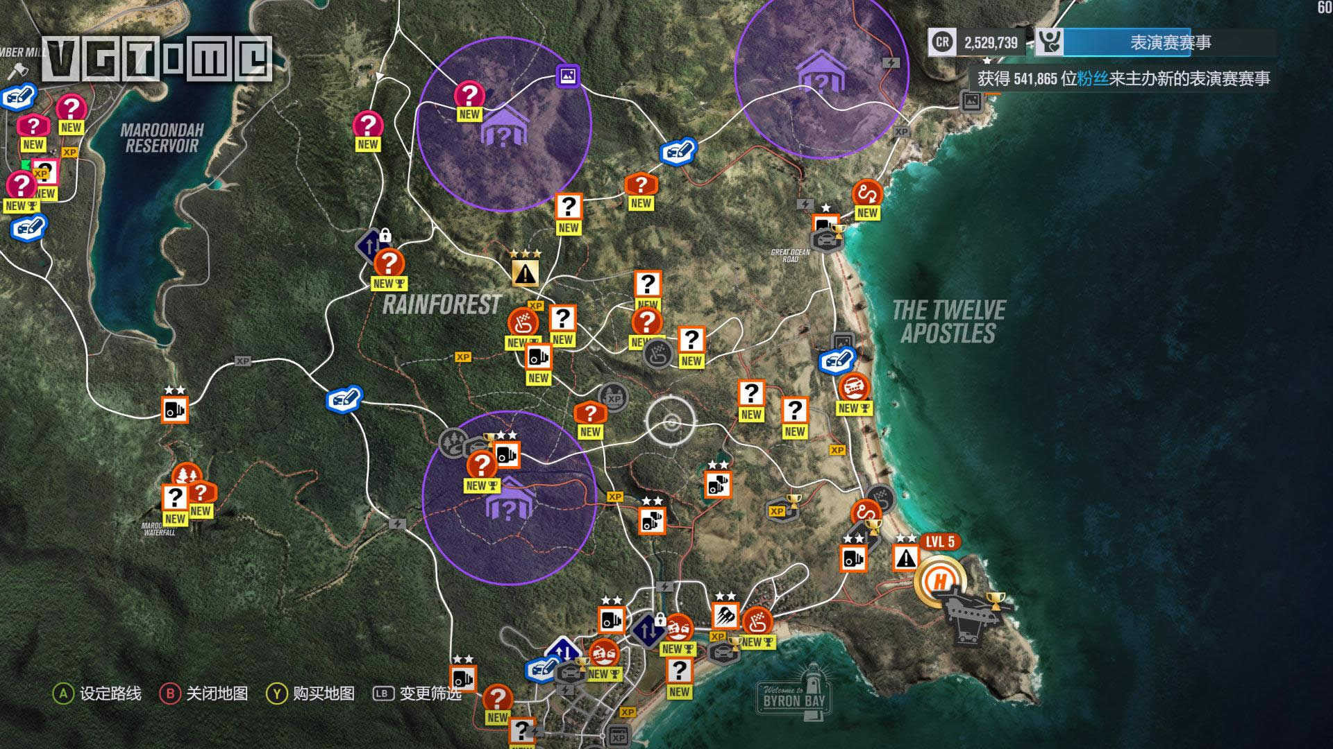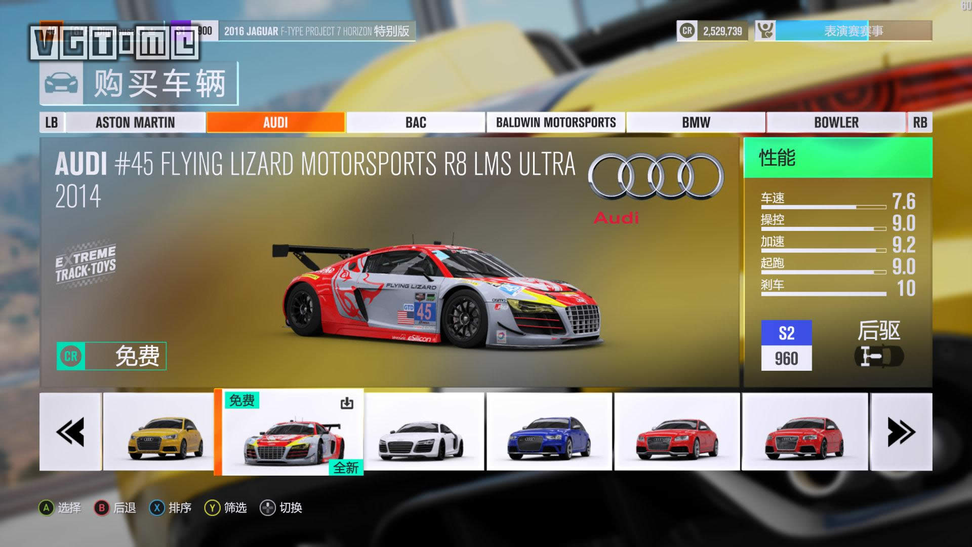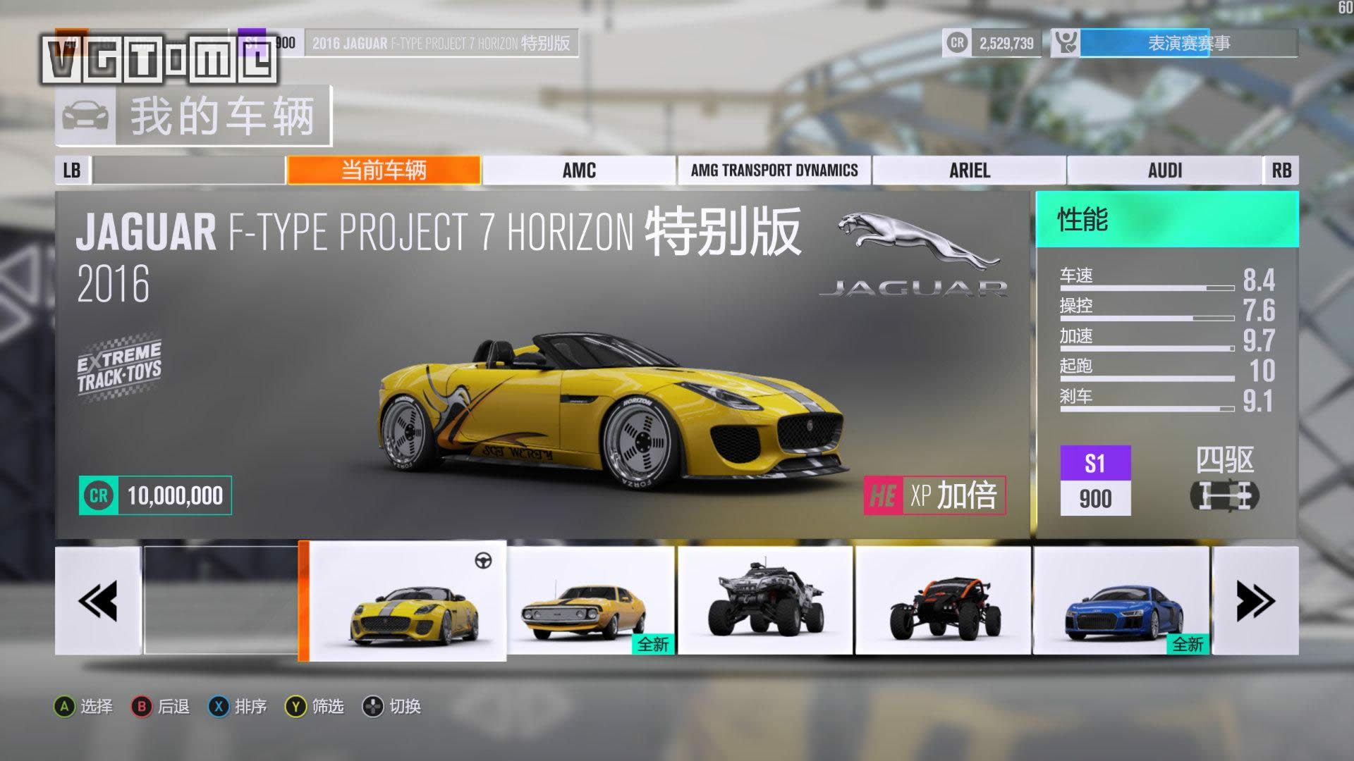 ▲危险标志公关特技要飞得越远越好 街头赛事:标志为蓝色旋转90度的正方形,通过与地图上的AI赛车发起单挑比赛解锁的特殊赛事,和普通比赛不同的是赛道上会存在街车,驾驶需要更加谨慎。 每达成一定的粉丝数量里程碑,就会解锁嘉年华扩建或新建的机会,而新的赛事也需要通过升级和扩展嘉年华才能解锁,因此务必第一时间将它们完成,否则一个区域的赛事全部完成之后就没有事情可做了。 更高效地飙车 游戏本体有约350辆车可供选择,这些车辆在嘉年华中心的车展中可以随意用货币点数购买,不存在任何意义上的限制,只要你有钱。此外,还有一部分车辆是通过其他途径获取的: 预购奖励:顾名思义,除了预购可获得的3个车辆DLC(来自《极限竞速 地平线2》和《极限竞速6》的主题车辆包以及两个高级版本附赠的全明星车辆包)之外,还有一部分是特定零售商限定特典; VIP限定:游戏的VIP通行证附赠的5辆特殊涂装调校车辆,不过它们的普通版本均包含在本体游戏中可直接用货币点数购买。