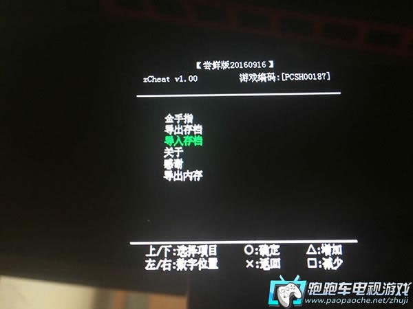 4.在主目录按start+select 进入zcheat,然后按导入存档