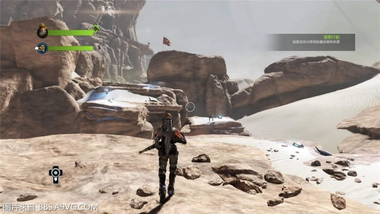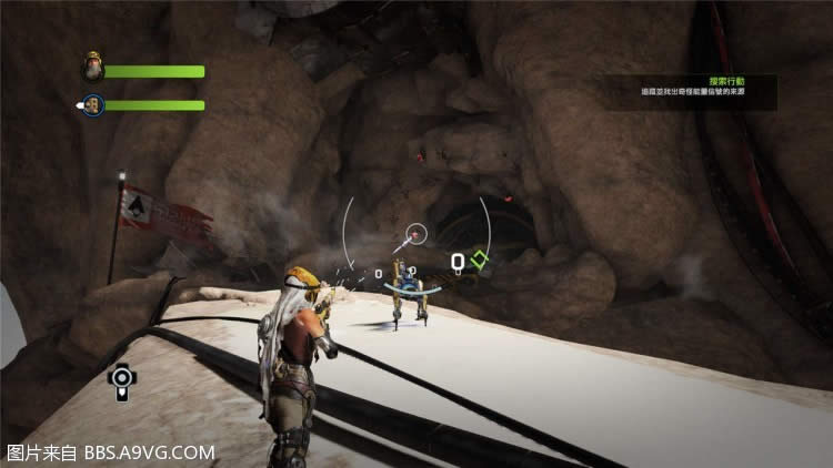 遭遇第一场战斗,按住LT可自动瞄准,瞄准时使用右摇杆切换瞄准目标,游戏是自瞄系统,玩家只需要在战斗中走位即可