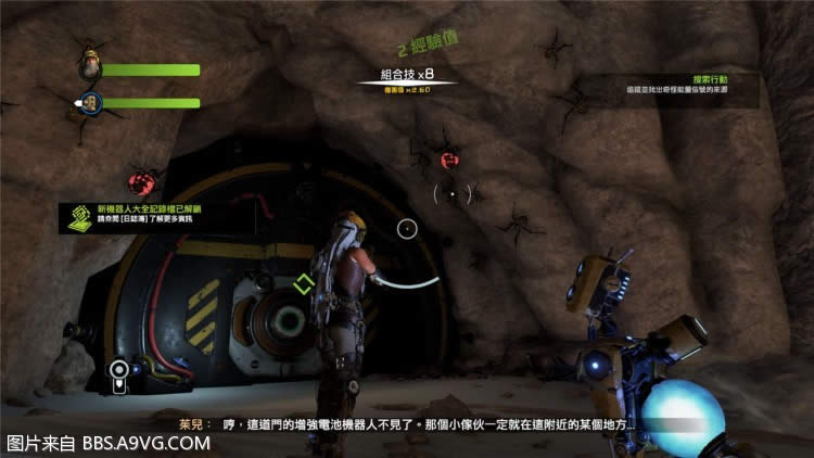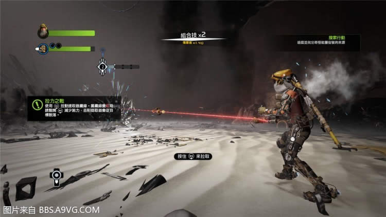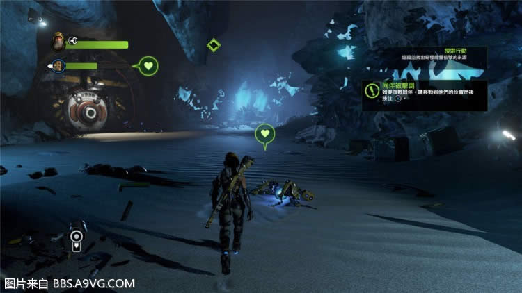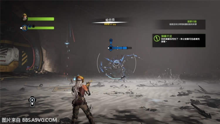 左上角的HUD是茱儿以及小伙伴机器人的血条;左下方是枪支弹药的切换,随着剧情发展会解锁特殊子弹