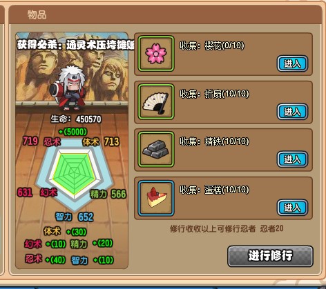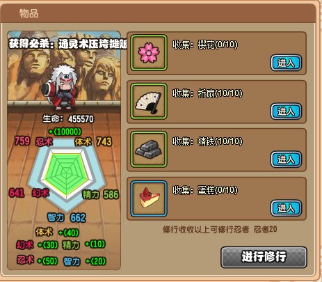 | 网页游戏又称Web游戏,无端网游,简称页游。是基于Web浏览器的网络在线多人互动游戏,无需下载客户端,不存在机器配置不够的问题,最重要的是关闭或者切换极其方便,尤其适合上班族。页游戏也具有门槛低、生命周期短、用户黏度低的缺点。因此游戏开发商在开发游戏之时应先设定好游戏玩家日标群,走细分市场和精品路线。 火影传说攒到了40w声望,酒馆就可以毕业!这里分享个骨灰级玩家的一些心得与游戏资料,临近40w声望之时不忘咨询,搜索自来修行材料,记录下了材料到底有哪些,仅供还没有拿到自来也的玩家们参考,提前做好准备,节省一些体力。 | ||